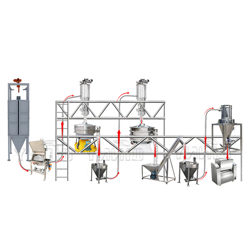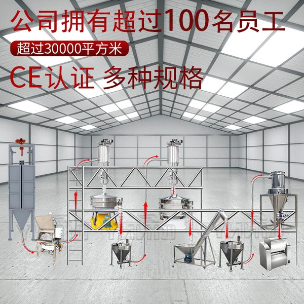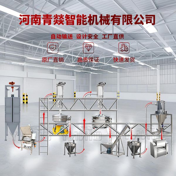气动输送管道:连接各设备的白色管道,通过气压完成粉体物料的密闭转运,避免粉尘污染与物料损耗。